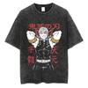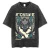 Sommer Japanisches Anime Print T-Shirt Kurzarm Herren Damen Vintage Gewaschenes T-Shirt Übergroß Baumwolle O-Ausschnitt T-Shirt