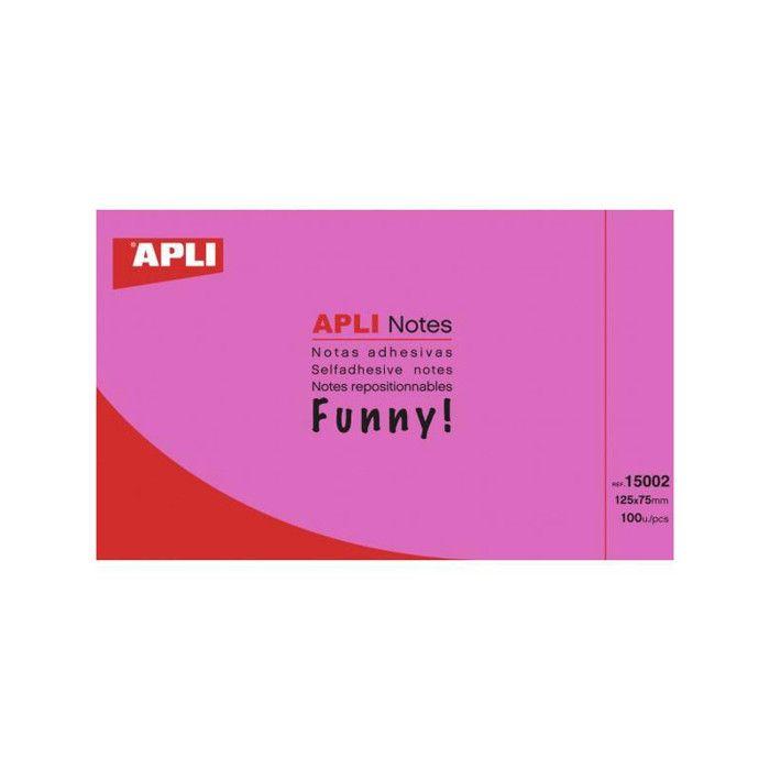 Haftnotizen - APLI - Block mit 100 - 125x75 mm - Leuchtend rosa - Wiederablösbar