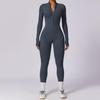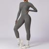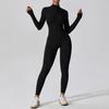 Europäischer & Amerikanischer Langarm-Reißverschluss-Body - Hüfthebende Fitness- & Yogahose für Damen in Schwarz