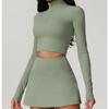 Damen High-Intensity Schnelltrocknender Yoga-Anzug: Oberteil mit Reißverschluss und langen Ärmeln & Laufrock