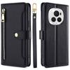 Für Honor Magic6 Pro 5G Hülle Reißverschlusstasche Brieftasche Sturzsichere Leder Handyhülle mit 2 Tragebändern