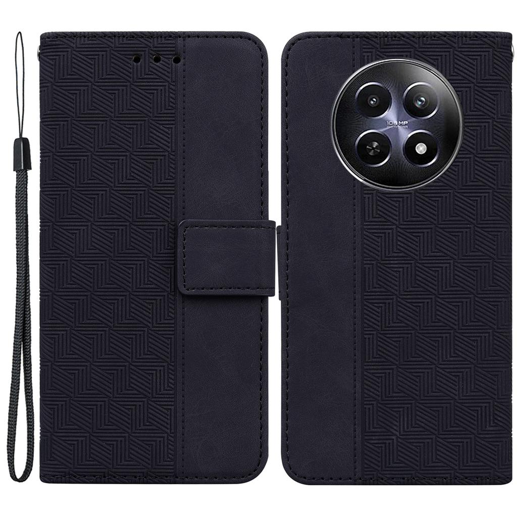 Für Realme 12 5G/12x 5G Leder Handyhülle Geometrie Geprägt Klappständer Hülle