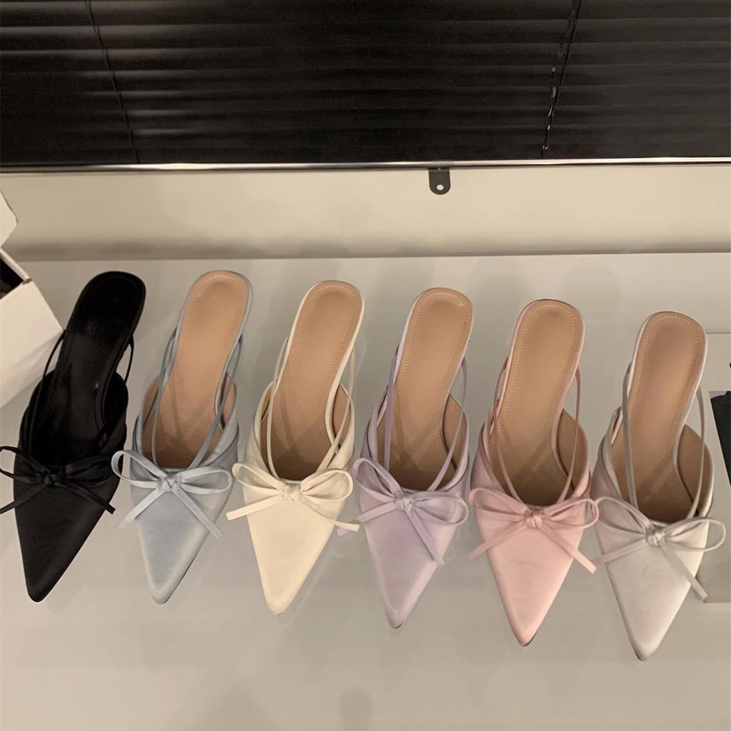 Dicker Absatz Schleife Tasche Kopf Halbschuhe Feenschuhe Satin Temperament halbe Ablage Einzelschuhe