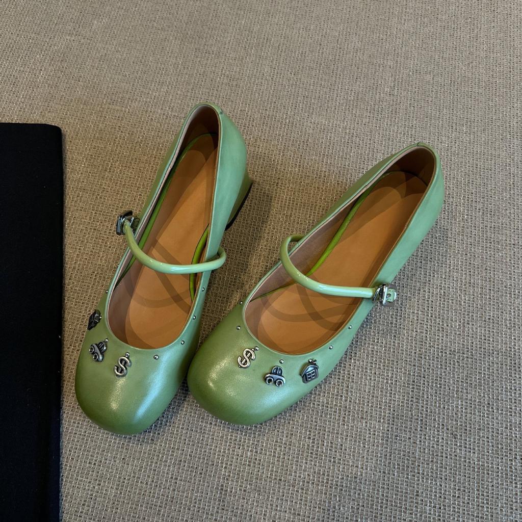Frühling und Herbst neue runde Spitze poliertes Nischendesign mit dickem Absatz Mary Jane Einzelne Schuhe Damen mittlerer Absatz