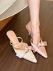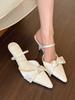 Premium weißes Mondlicht! Satinweiße spitze Schleife High Heels Damen leere Sandalen
