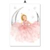 Rosa Engel Mädchen Sonne Mond Wolke Schwan Schloss Wandkunst Kinderzimmer Leinwand Malerei Nordische Poster Drucke Bilder Baby Kinderzimmer Dekor