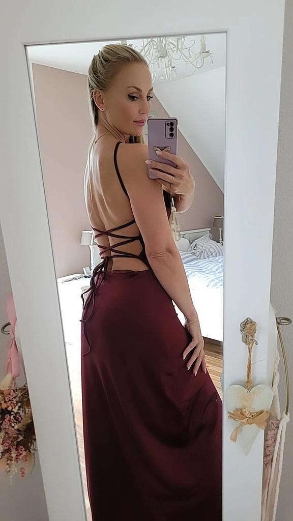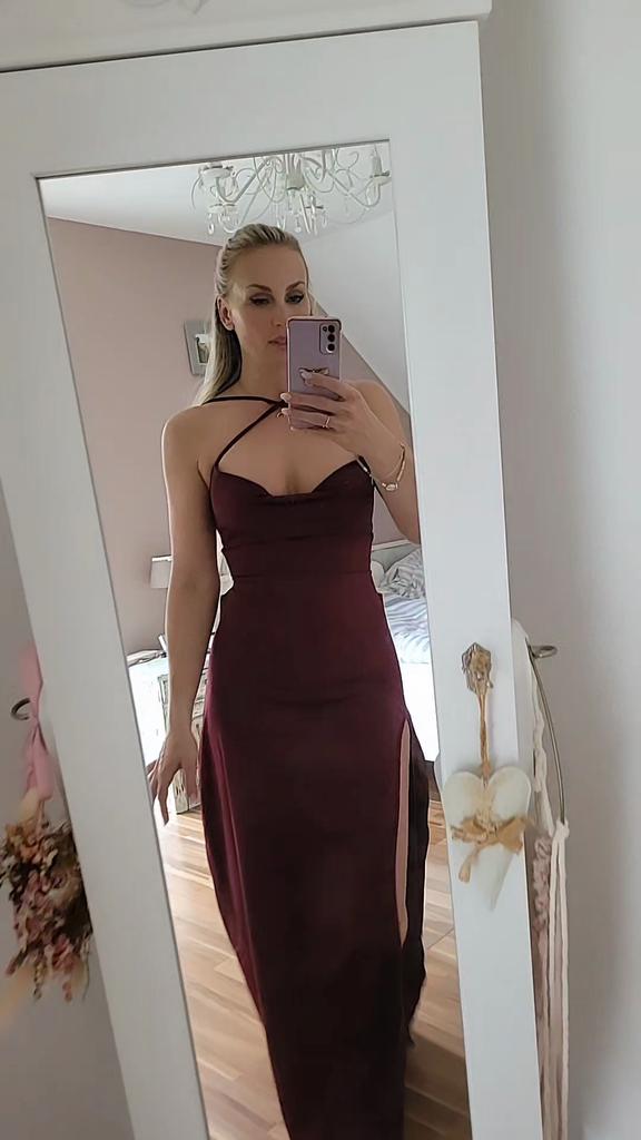 * sexy bodycon Abiballkleid mit variablen Spaghettiträgern * 💥𝗟𝗶𝗲𝗳𝗲𝗿𝘇𝗲𝗶𝘁 Genau 17 Tage 💥𝗟𝗶𝗲𝗳𝗲𝗿𝘂𝗺𝗳𝗮𝗻𝗴 Im Lieferumfang enthalten ist 1 Kleid in entsprechender Farbe und Größe. Verfügbar ist das Kleid in 3 verschiedenen Farben in den Größen S bis XL. Ich habe das Kleid in Größe L in rot bestellt. Ich habe Kleidergröße 36 bis 38. Ich wiege 62 kg auf 172 cm verteilt. Körbchengröße 75D. Mir passt das Kleid überragend ! ☺️👌 Denn es ist etwas stretchig. 💥𝗤𝘂𝗮𝗹𝗶𝘁ä𝘁 Das Kleid ist komplett blickdicht... das finde ich super. Dehnbar ist das Kleid auch ein wenig. Die Bänder an den Schultern bzw Rücken sind stabil und dehnbar. Das Kleid hat eine super schöne Passform, Perfekt für eine Sanduhr- Silhouette. ⌛ Besonders gut gefällt mir der Rückenausschnitt und die variable Trageweise der Bänder am Dekolleté bzw Schultern. Ich habe insgesamt vier verschiedene Varianten ausprobiert (siehe Fotos und Video) Das Dekolleté kommt wunderschön zur Geltung. Zur Materialzusammensetzung : 100% Polyester, aber das Kleid fühlt sich etwas wie Satin und schimmert auch genauso schön wie Satin. Die Länge finde ich bei meiner körpergröße von 172 cm optimal 👌 💥𝗙𝗮𝘇𝗶𝘁 Mega schönes sexy Kleid mit Spaghettiträgern, das eine sehr schöne Passform hat... das passt sich perfekt der Figur an. ....aber Nachteil ist, dass der Ausschnitt so ungünstig verrutscht beim Tragen, so dass meine brüste6 rausfallen Man kann das Kleid in seiner Originalgröße bestellen. Es fällt größengerecht aus , lässt sich aber auch dank der Bänder am Rücken variabel enger oder weiterstellen.