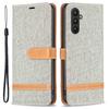 For Samsung Galaxy A24 4G (162.1 x 77.6 x 8.3mm) Splicing PU Leather Phone Cover Jeans Cloth Phone Case with Stand Wallet