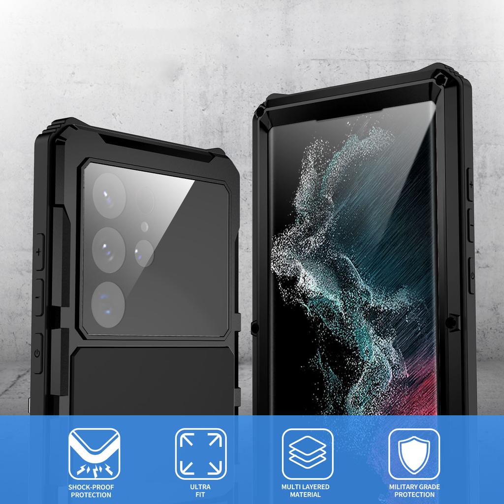 R-JUST Für Samsung Galaxy S22 Ultra 5G Wasserdichte Sturzsichere Hülle Ständer Rückseite mit Hartglas