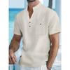Herren Baumwolle und Leinen Kurzarm Stehkragen Halb geknöpftes Hemd - Frühling und Sommer Lässige Outdoor-Bekleidung