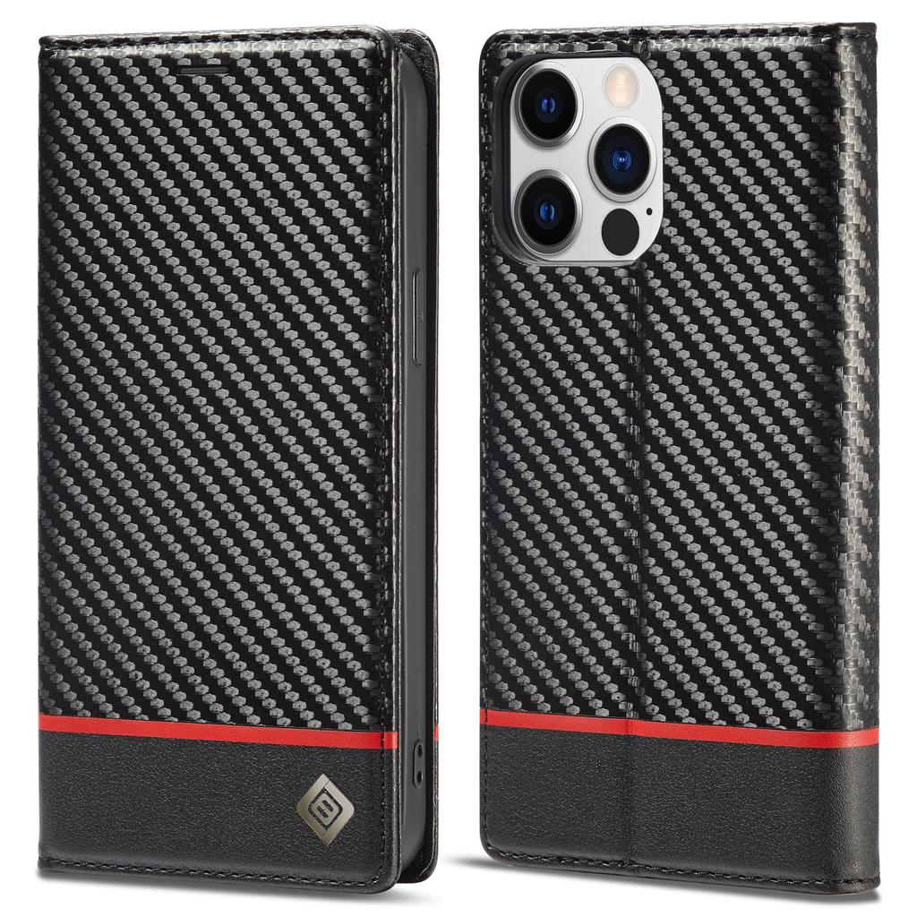 LC.IMEEKE Für iPhone 15 Pro Max Stoßfeste Lederständerhülle Kohlefasertextur Brieftasche Handyhülle