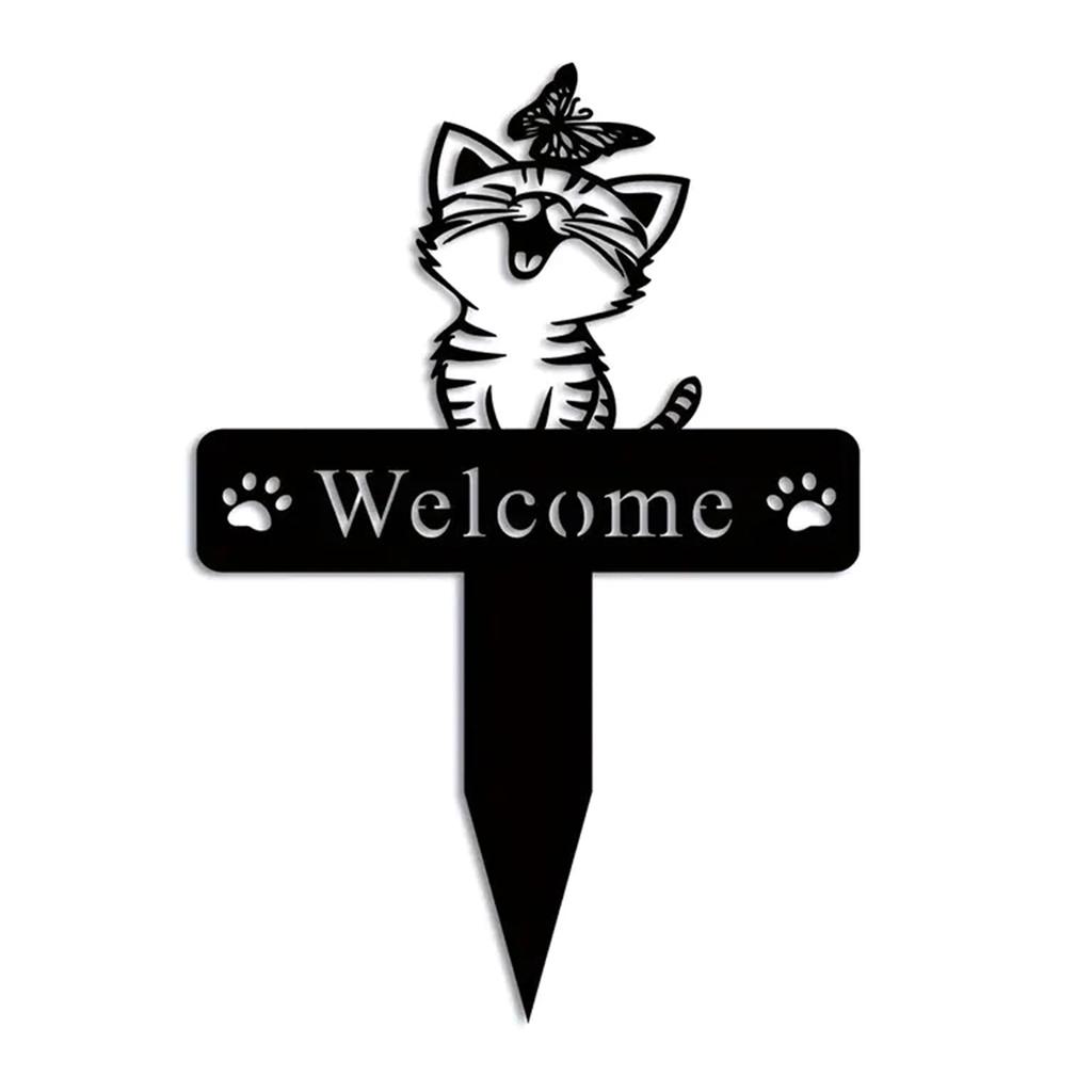 Garten Dekoration Katze Willkommen Dekoration Metallkunst Stake für Hof und Weg Eingang Katzen-Thema Garten Ornament