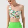 Blumiges Ein-Schulter-Yoga-Weste-Set: Damen Sport-BH & Fitnesshose mit Brustpolstern