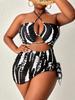 Erleben Sie die perfekte Mischung aus Stil und Komfort mit diesem dreiteiligen Mesh-Halter-Bikini in Übergröße und einteiligen Badeanzug für Damen.. Dieser Badeanzug wurde speziell für Frauen entworfen und verfügt über ein modisches Streifenmuster, das am Pool oder am Strand garantiert ein Statement setzt.. Hergestellt aus hochwertigem Polyester, verspricht es Langlebigkeit und eine bequeme Passform.. Das Set beinhaltet einen schicken Neckholder-Bikini und einen eleganten einteiligen Badeanzug, die es Ihnen ermöglichen, zu mischen, zu kombinieren und vielseitige Looks für jeden Schwimmanlass zu kreieren.. Ideal für diejenigen, die sowohl Mode als auch Funktion in ihrer Bademode schätzen.