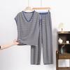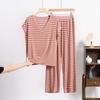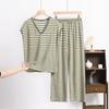 Frühlings- und Sommer-Neues Retro-Gestreiftes V-Ausschnitt Kurzarm-Shorts-Set, Locker und Lässig Übergröße Dünne Hausbekleidung