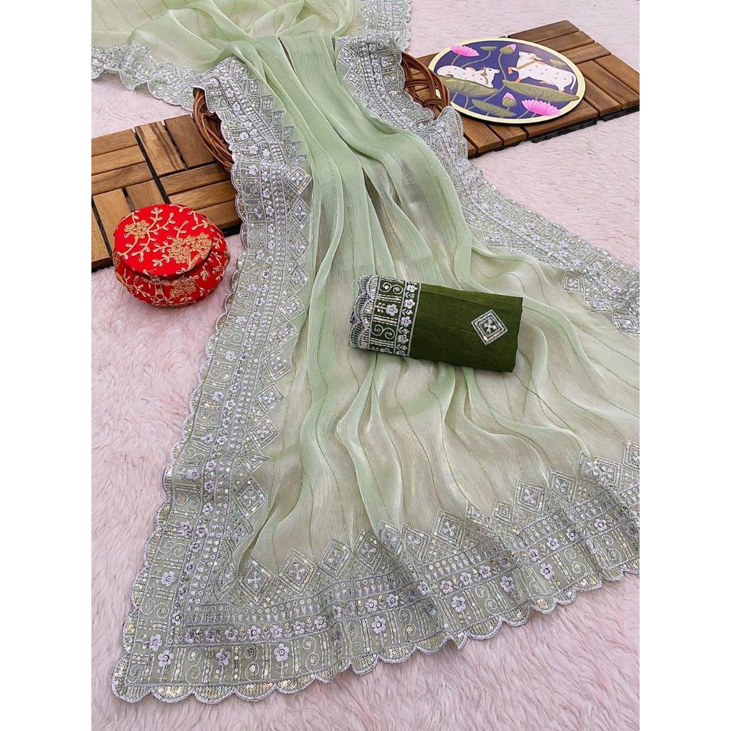 SAREE-ARBEIT- Zari-Arbeit mit Paillettenarbeit Mit Bordüre und Aarco