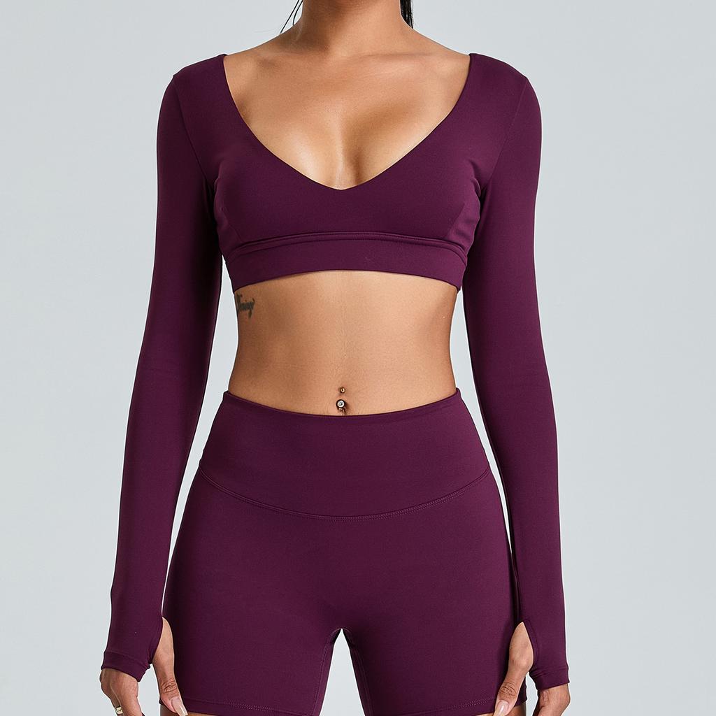 Neues Pure Desire V-Ausschnitt Yoga-Top Damen Slim Fit Kurzarm T-Shirt Outdoor Schnelltrocknend Enganliegende Fitnessbekleidung