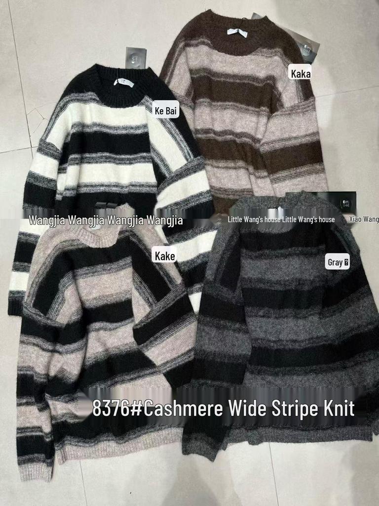 Xiao Wang's 8376 Winter Plus Size Casual Striped Knit Sweater