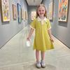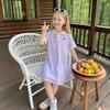 Girls Polo Dress Summer Short Sleeve Purple A Line Korean Style New Fashion Plain Color Collar Dress