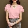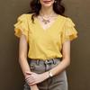 ZANZEA Damen Lässig V-Ausschnitt Rüschen Kurzarm Sommerbluse