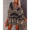 Sommer Damen Rock Vintage Lose V-Ausschnitt Langarm Bequemes Freizeitkleid