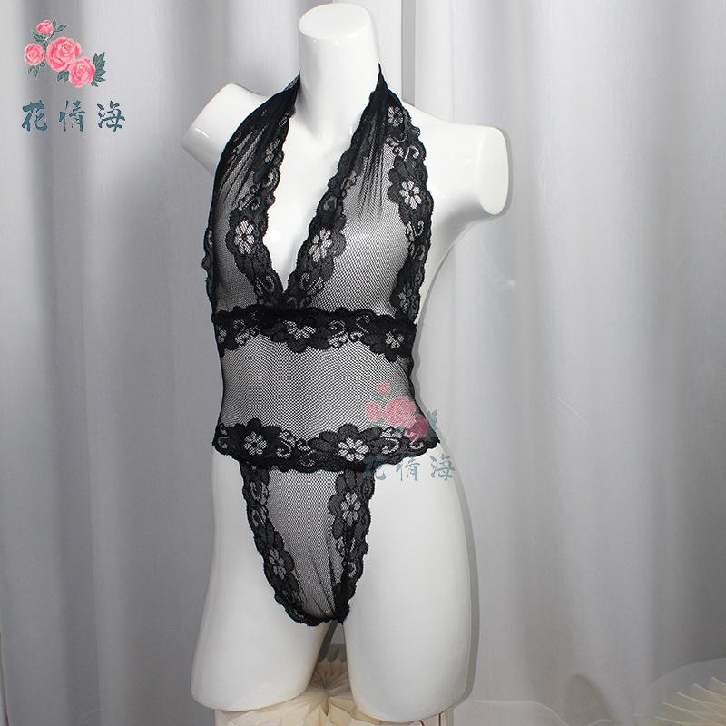Erotic underwear European and American sexy breasts perspective tight lace mesh temptation