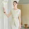 Werten Sie Ihre Garderobe mit diesem raffinierten zweiteiligen Set auf, bestehend aus einem stilvollen ärmellosen Mantel und einem passenden Rock, entworfen für die moderne Frau.. Dieses Ensemble ist fachmännisch aus luxuriösem Viskosematerial gefertigt und bietet eine weiche und bequeme Passform, die sowohl Eleganz als auch Bewegungsfreiheit gewährleistet.. Das schlanke, hellfarbene Design verleiht einen Hauch von Raffinesse und Vielseitigkeit und macht es perfekt für sowohl berufliche als auch gesellschaftliche Anlässe.