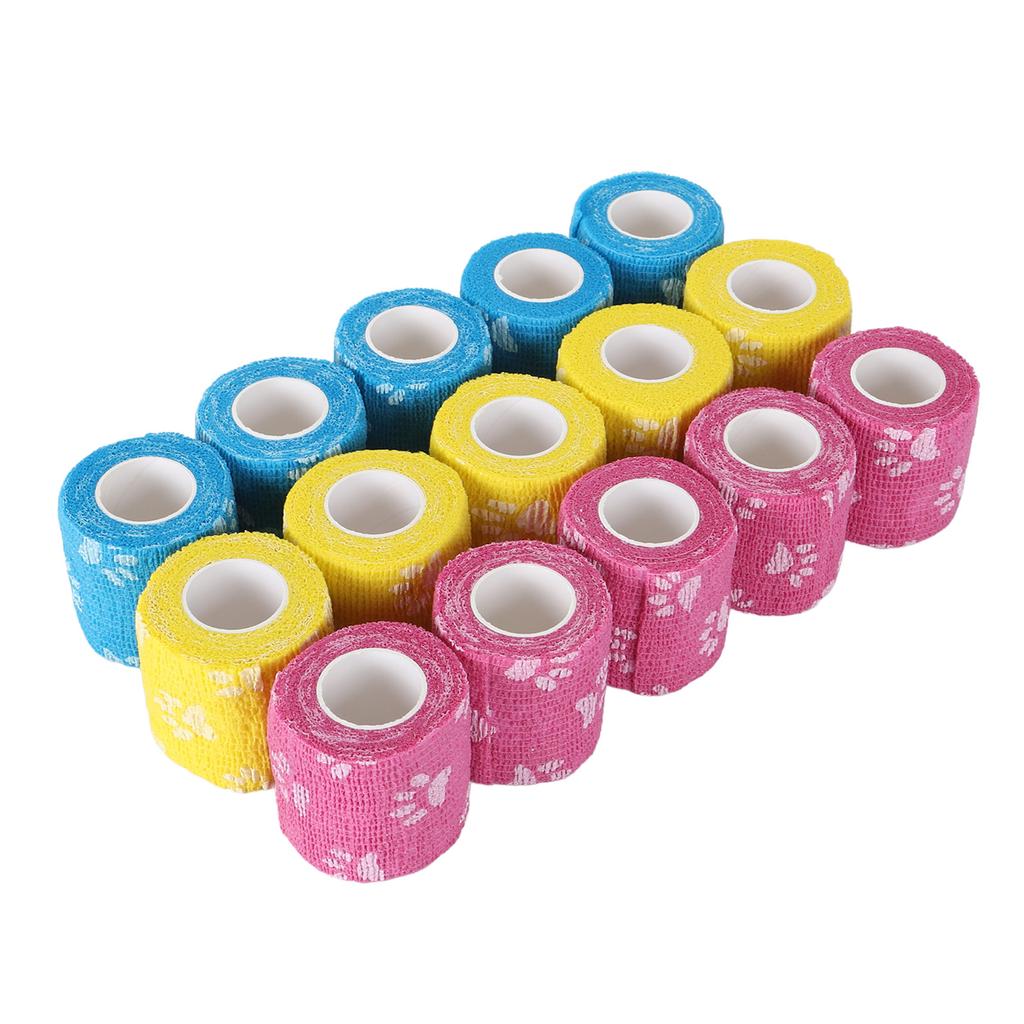 15PCS Tattoo Grip Cover Wraps Self Adhesive Elastic Tattoo Bandage Tape Paw Print Yellow Blue Rose Red 5cm Width
