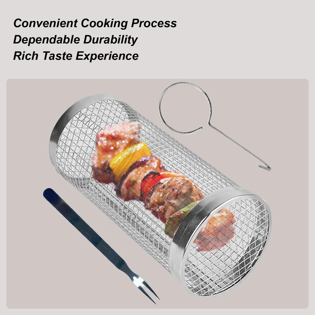 2025 new Stainless Steel BBQ Basket Portable Rolling Wire Mesh Cylinder Grill Basket for Outdoor Camping Barbecue