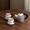 Keramik-Teekannenset im europäischen Stil Schwarz-weiß gestreifte Kaffeetasse Exquisites Nachmittagstee-Teeset Hochwertiger Kessel Heimdekor