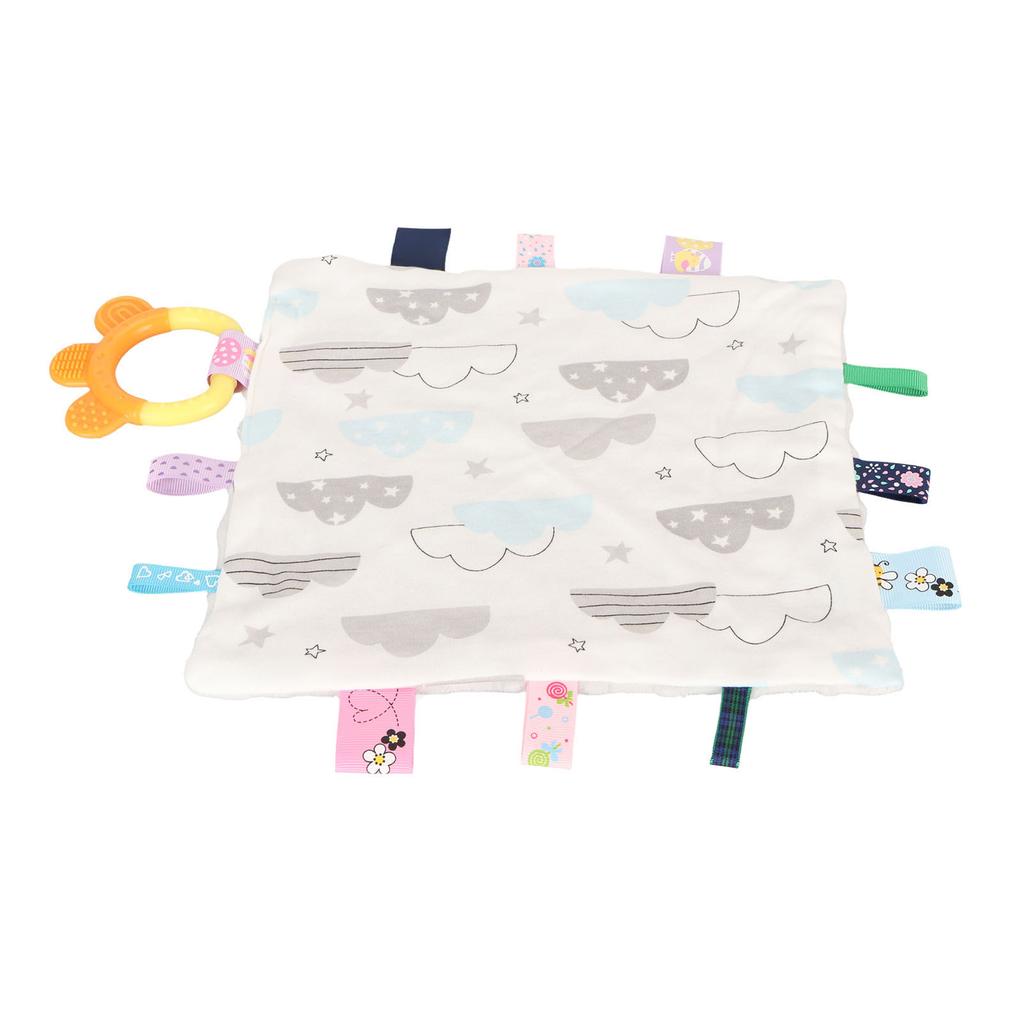 Babyetiketten Sicherheitsdecke Weiche Baumwolle Niedliches Wolkenmuster Beruhigende sensorische Decke mit Beißring