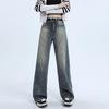 These women's jeans are designed with a sporty, retro flair and are perfect for the transitioning seasons of spring and autumn. Crafted from durable denim, they feature a high waistline that flatters the pear-shaped figure, providing a comfortable and loose fit. With their wide-leg design, these jeans offer a versatile and timeless addition to any plus-size wardrobe.