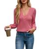 Herbst- und Winter Damenbluse Mehrlagiger V-Ausschnitt Einfarbig Langarm Tops
