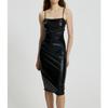 European & American Nightclub Sexy PU Leather Bodycon Dress - Little Black Dress with Ruched Spaghetti Straps