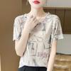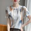 Frühlings- und Sommermode Gerendeter Bedruckter Kurzarm Lockerer Lässiger Strickpullover Dünnes Tencel Halbarm