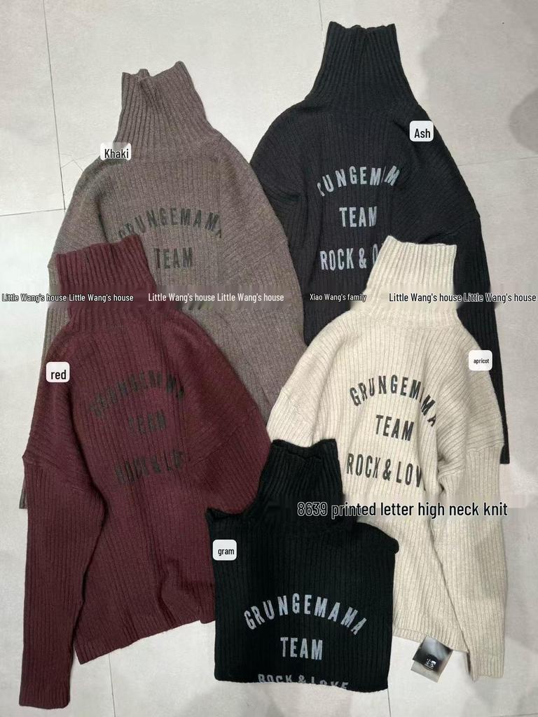 Xiao Wang's Winter Korean Style Plus Size High Neck Letter Knit Sweater