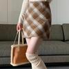 High Waist Retro Woolen Plaid A-line Skirt for Women (Spring/Autumn/Winter)