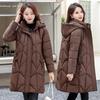 Erleben Sie ultimativen Komfort und Stil mit diesem Damen-Baumwollmantel in mittlerer Länge im koreanischen Stil. Fachmännisch für kaltes Wetter entworfen, verfügt es über eine Daunenbaumwollfüllung, um Wärme und Isolierung gegen raue Wintertemperaturen zu gewährleisten.. Der Mantel zeichnet sich durch einen lockeren Schnitt aus, der eine schlankmachende Wirkung hat und gleichzeitig Platz für darunterliegende Schichten bietet.. Seine abnehmbare Kapuze sorgt für Vielseitigkeit und ermöglicht es Ihnen, Ihren Look je nach Wetterlage anzupassen.. Mit langen Ärmeln und einem Kapuzenausschnitt ist diese Oberbekleidung aus strapazierfähigem Polyester gefertigt, was sie zu einer zuverlässigen und modischen Wahl für Ihre Wintergarderobe macht.