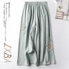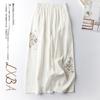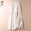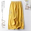 Baumwolle Leinen Lässig Frühling Sommer Dünn Retro Ethno-Stil Bestickt Weitbein Vielseitig Neun-Minuten-Hose