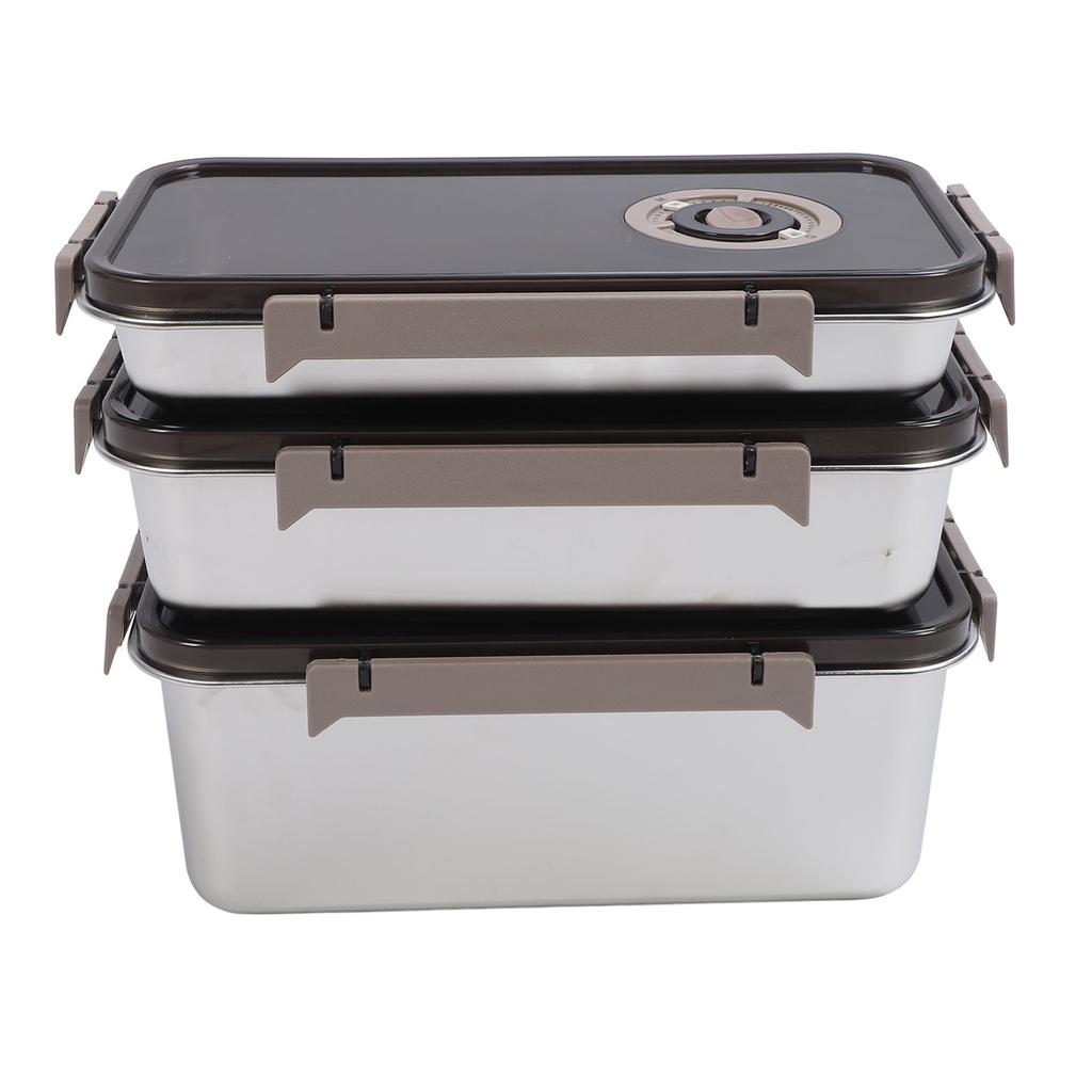 3pcs Stainless Steel Crisper Professional High Capacity Airtight Microwaveable Fridge Food Storage Container with Lids for Kitchen