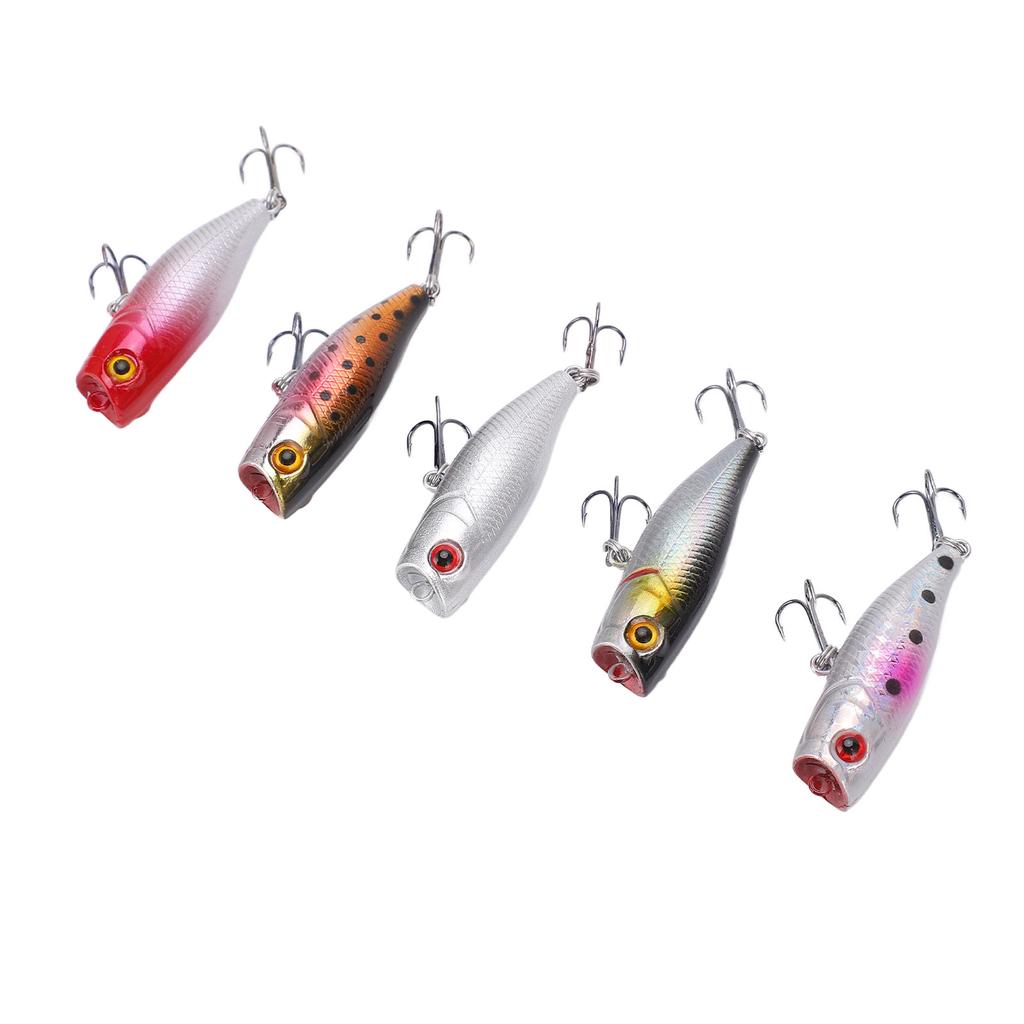 5 Stück 4,5 cm/3,5 g Angelköder Bass Hardbaits Topwater Popper Köder 3D Augen Lebensechte Schwimmköder für Süßwasser Salzwasser
