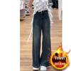 Introducing our Women's Plus Size Fleece-Lined Micro-Flared Jeans for the 2024 Autumn/Winter season, designed to combine comfort and style. These jeans are crafted from premium denim, ensuring durability and a classic look. The high waistline offers a flattering fit, while the unique straight-leg, wide-leg style adds a touch of modern elegance. Lined with fleece, these jeans provide warmth without compromising on style, making them perfect for colder months. With convenient pockets for functionality and a sportive style, these jeans are a versatile addition to your wardrobe, ideal for both casual and semi-formal outings.