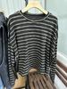 Xiao Wang's 52009 Autumn Korean-Style Loose Plus Size Casual Striped Round Neck Long Sleeve T-shirt