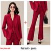 Discover the perfect blend of style and sophistication with this women's red three-piece suit set, ideal for both autumn and spring. Designed as a fashion-forward workwear option, it exudes a touch of goddess-like elegance. Crafted from high-quality polyester, it offers both comfort and durability. This set is perfect for an empowering and fashionable statement in professional settings or chic outings.