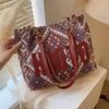 WTEMPO Large Capacity Ethnic Style Canvas Bags Women Trendy Commuting Tote Bags Contrast Color Chain Single Shoulder Handbags