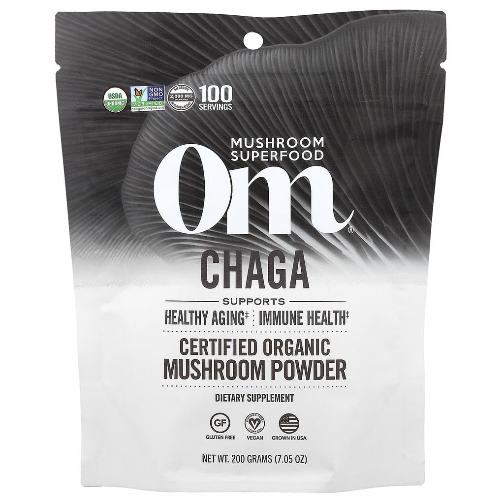 Mushrooms are packed with unique bioactive nutrients not found in other plant or animal sources. Om contains 2,000mg of certified organic mushroom powder blend per serving.