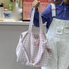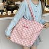 Candy Color Plaid Shoulder Bag Letter Large Capacity Crossbody Bag Simple Canvas Tote Bag Girls