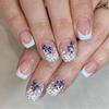 Verschönern Sie Ihre Styles mit unseren 24 Stück French Tip Short Press On Nails, Glitzerdesign, Blumendesigns, einfacher Anwendung, die einen luxuriösen und raffinierten Maniküre-Look bieten.