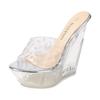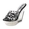 Sommer Sandalen mit Leopardenmuster für Damen, wasserdichte Plateau-Hohlkeilabsatz Damenschuhe, transparente Absatz Mode-Sandalen