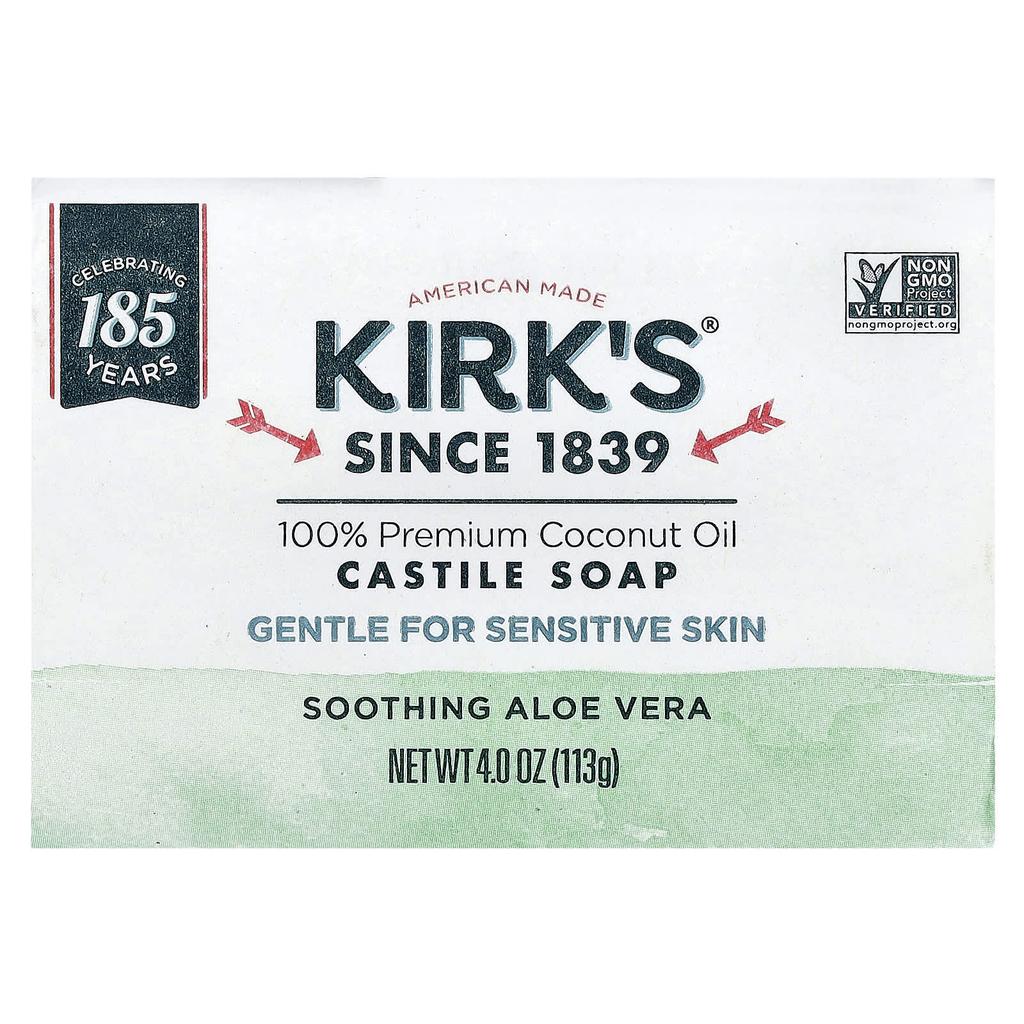 Kirk'S, 100% Premium Coconut Oil Castile Bar Soap, Soothing Aloe Vera, 113G(4Oz)